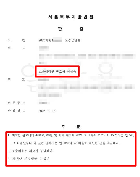 결국, 의뢰인(임차인)은 2025. 1. 6. 보증금 반환 소송을 당사에 의뢰해주셨습니다.