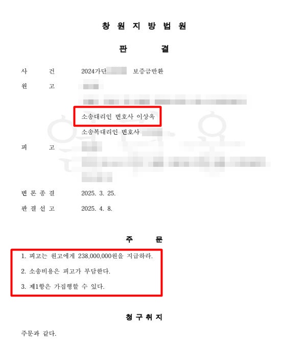 2024. 11. 11. 238,000,000원 보증금반환청구 소송 제기