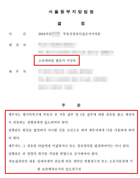가. 저희 법률사무소 명건은 의뢰인 A씨를 대리하여 임차인 B씨를 상대로 명도소송을 제기함에 앞서, 부동산점유이전금지가처분 신청을 먼저 진행하였습니다.