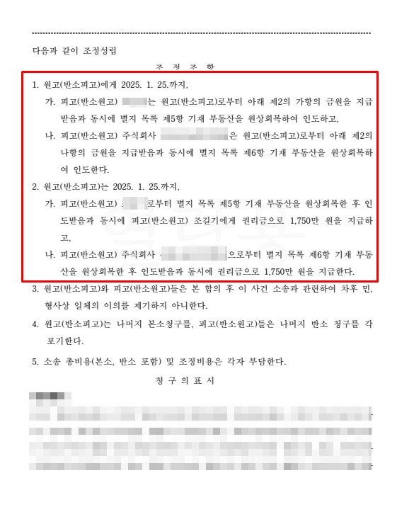 이로써, 의뢰인은 제1심 패소로 인하여 권리금을 전혀 회수할 수 없게 될 뻔하셨다가, 제2심에서의 조정 성립으로 권리금 35,000,000원을 회수할 수 있게 되셨습니다.
