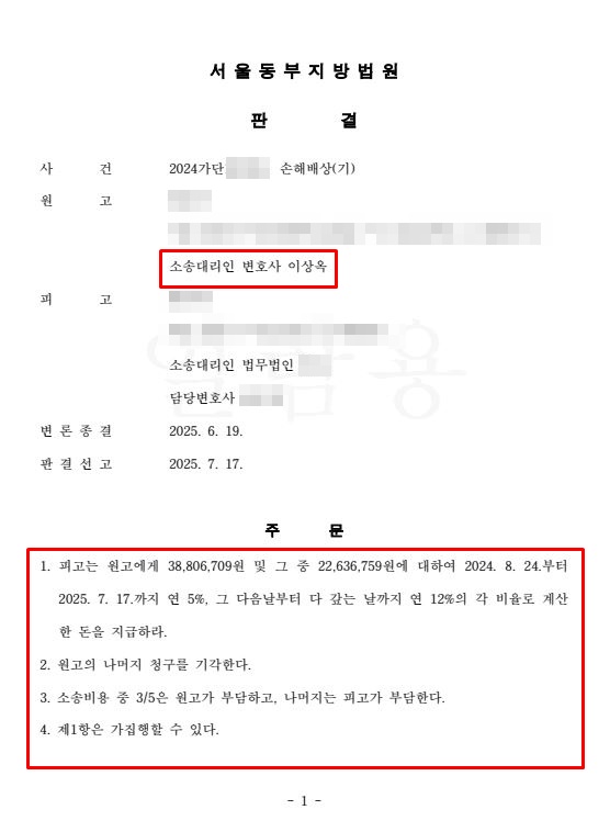 이로써, 임차인(의뢰인)은, 영업중단으로 인한 손해 대부분에 대한 배상과 보증금 대부분을 지급받을 수 있었습니다.