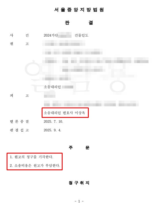 재판부는 저희의 주장을 대부분 받아들여 원고(임대인)의 청구를 전부 기각하는 판결을 선고했습니다.