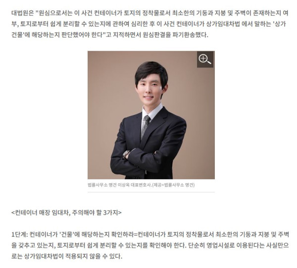 이상옥 대표변호사는 "이번 대법원 판결은 컨테이너를 이용한 상가 영업이 증가하는 현실에서 매우 중요한 의미를 갖는다"고 하면서,